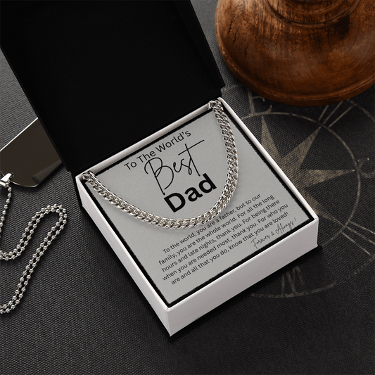 TO THE WORLD'S BEST DAD | THANK YOU FOR BEING THERE | CUBAN LINK CHAIN