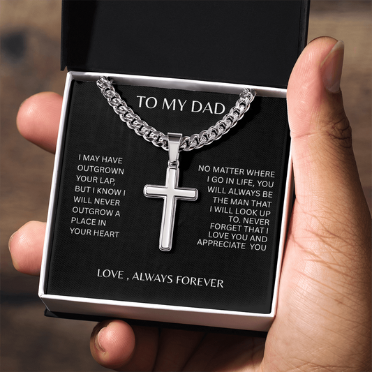 TO MY DAD | A PLACE IN YOUR HEART | ARTISAN CROSS AND CUBAN CHAIN NECKLACE